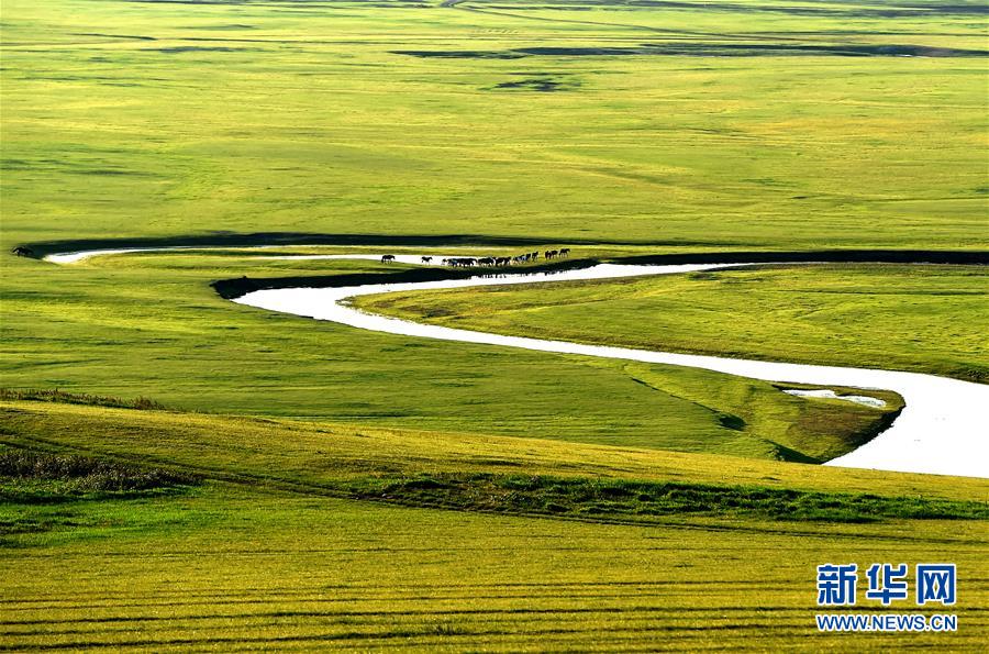 8月29日無(wú)人機(jī)拍攝的內(nèi)蒙古呼倫貝爾市陳巴爾虎旗境內(nèi)的莫日格勒河局部。新華社記者任軍川攝