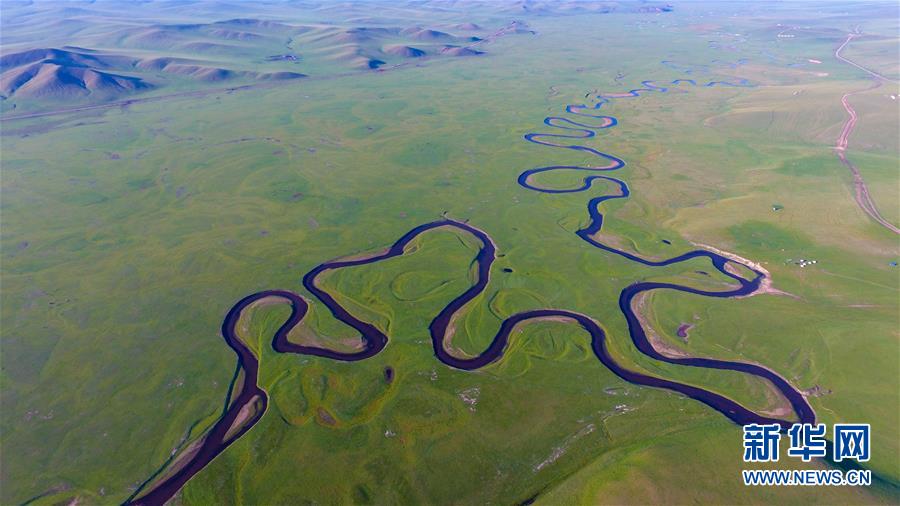 8月29日無人機拍攝的內蒙古呼倫貝爾市陳巴爾虎旗境內的莫日格勒河局部。新華社記者彭源攝