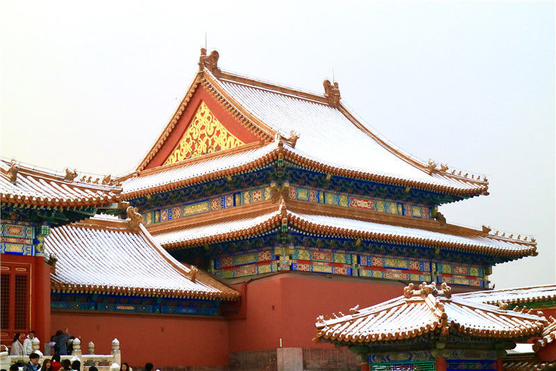初雪后故宮銀裝素裹游客排隊(duì)打卡