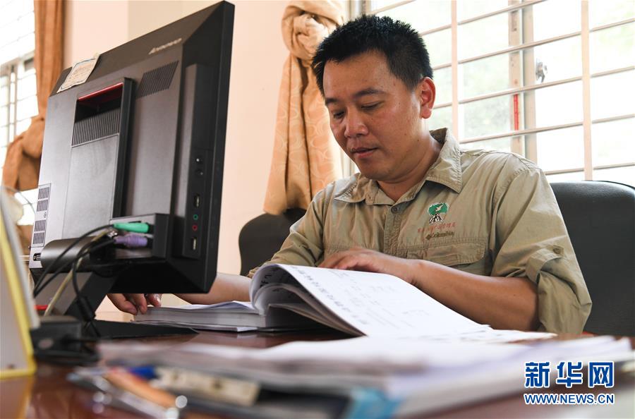 海南新盈紅樹林國家濕地公園巡護員兼監(jiān)測員羅理想(右)在濕地公園內(nèi)的辦公室里與同事探討工作(12月10日攝)。 羅理想2006年起開始參與紅樹林濕地的保護工作,近年來他參加了很多關(guān)于濕地的培訓(xùn)。2016年,羅理想在工作中監(jiān)測到極危鳥種勺嘴鷸,當(dāng)時有許多媒體做了報道,后來他又配合專家在濕地公園里發(fā)現(xiàn)了拉氏紅樹,“那個時候感覺自己的工作很有價值”,羅理想說。 新華社記者楊冠宇攝