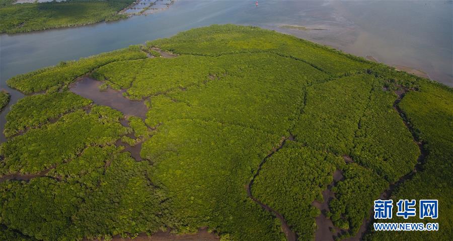 海南新盈紅樹林國家濕地公園的紅樹林(12月10日無人機拍攝)。 新華社記者楊冠宇攝