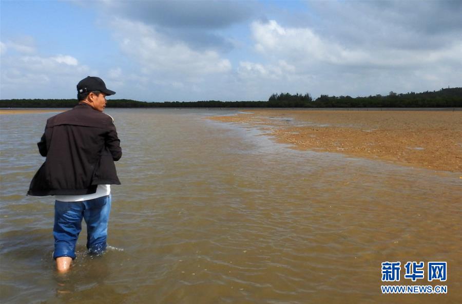 海南新盈紅樹林國家濕地公園巡護員兼監(jiān)測員羅理想在濕地公園內(nèi)的灘涂上做監(jiān)測(11月27日攝)。 羅理想2006年起開始參與紅樹林濕地的保護工作,近年來他參加了很多關(guān)于濕地的培訓(xùn)。2016年,羅理想在工作中監(jiān)測到極危鳥種勺嘴鷸,當時有許多媒體做了報道,后來他又配合專家在濕地公園里發(fā)現(xiàn)了拉氏紅樹,“那個時候感覺自己的工作很有價值”,羅理想說。 新華社發(fā)