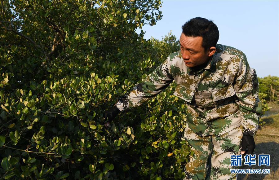 海南儋州新英灣紅樹林市級自然保護(hù)區(qū)護(hù)林員陳正平查看保護(hù)區(qū)內(nèi)的紅樹林情況(12月9日攝)。陳正平2010年開始在保護(hù)區(qū)工作,他將工作發(fā)展成愛好,廣泛參加各種培訓(xùn)和業(yè)內(nèi)交流。他在工作中拍到瀕危鳥類白肩雕出現(xiàn)在海南的照片,這刷新了海南省的鳥種記錄。新華社記者楊冠宇攝