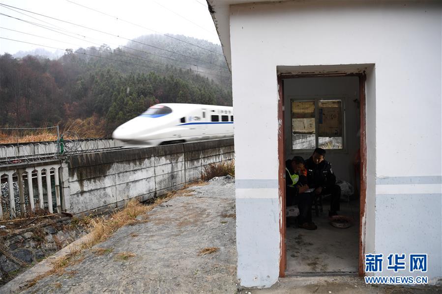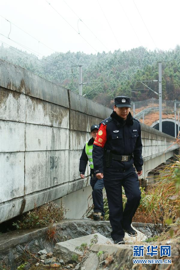金寨火車站派出所民警張嗣一在站臺接車(12月19日攝)。安徽合肥鐵路公安處金寨火車站派出所位于大別山腹地。在這里,除了所領導外,青年民警平均年齡不到29歲。他們遠離家鄉(xiāng),扎根大山深處的小站派出所,戰(zhàn)斗在守護客運平安的第一線。新華社記者張端攝