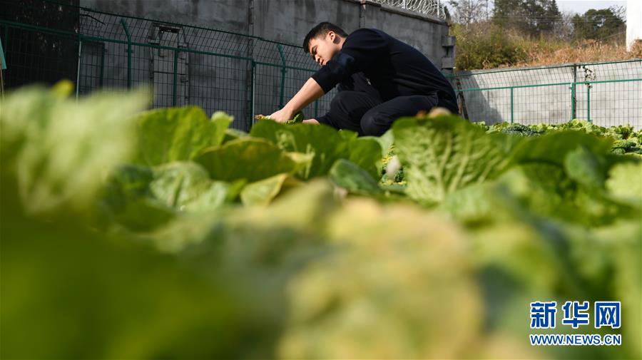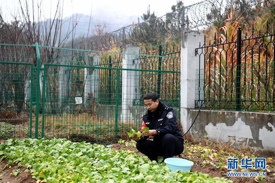 12月18日,常曉龍在菜園摘菜。警務室位于深山,平時買菜不方便,常曉龍在駐地院子里開墾了一片小菜園。新華社記者劉軍喜攝