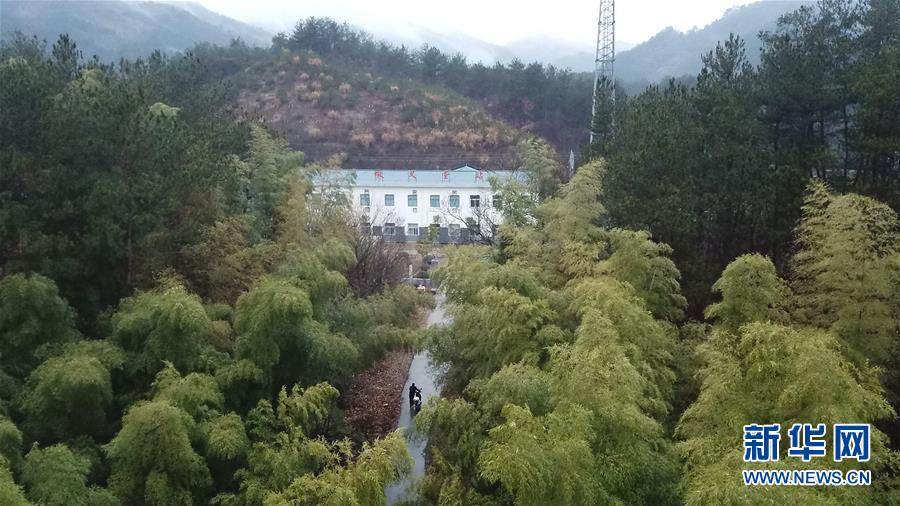 12月18日,常曉龍在巡線結束后回到墩義堂警務室(無人機拍攝)。新華社記者張端攝