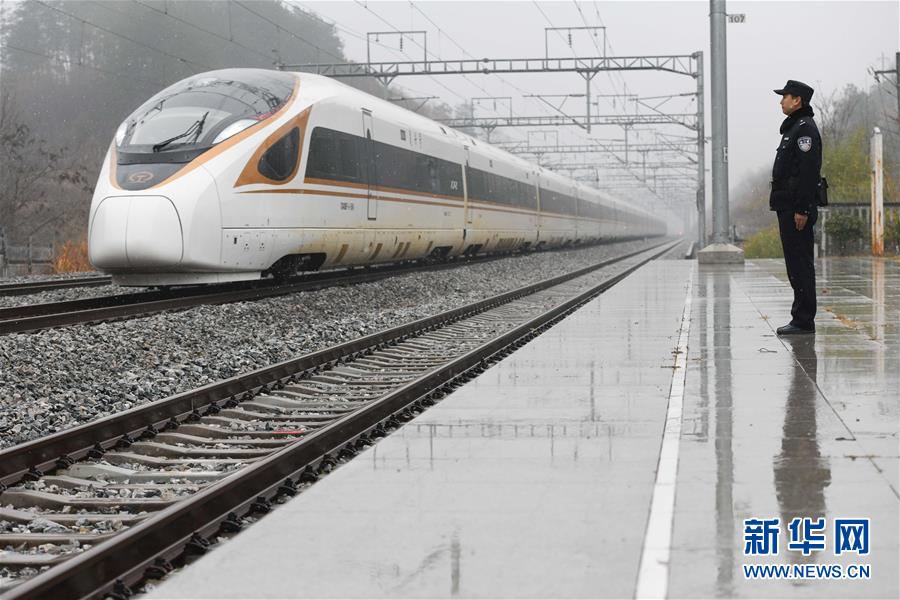 12月18日,常曉龍在墩義堂站接車。新華社記者張端攝