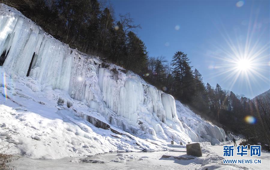 位于吉林省長白縣的十五道溝望天鵝風(fēng)景區(qū),屬長白山余脈。這里生態(tài)原始,古樹參天,瀑飛泉涌,怪石嶙峋,素有“北方九寨溝”的美譽。冬日里,在形態(tài)各異的巖墻、巖柱間流淌的溪水因低溫凝固,仿若時間凍結(jié),一切流動的美便以湍急之勢凝于石壁,形成了半冰半水、亦靜亦動的冰瀑景觀,盡顯大自然的鬼斧神工。新華社記者張楠攝