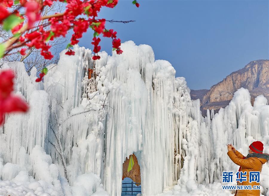 1月9日,游客在云臺山景區(qū)觀賞冰瀑景觀。近日,受降溫影響,位于河南省焦作市的云臺山景區(qū)出現(xiàn)冰瀑景觀,奇特壯美。新華社記者李嘉南攝