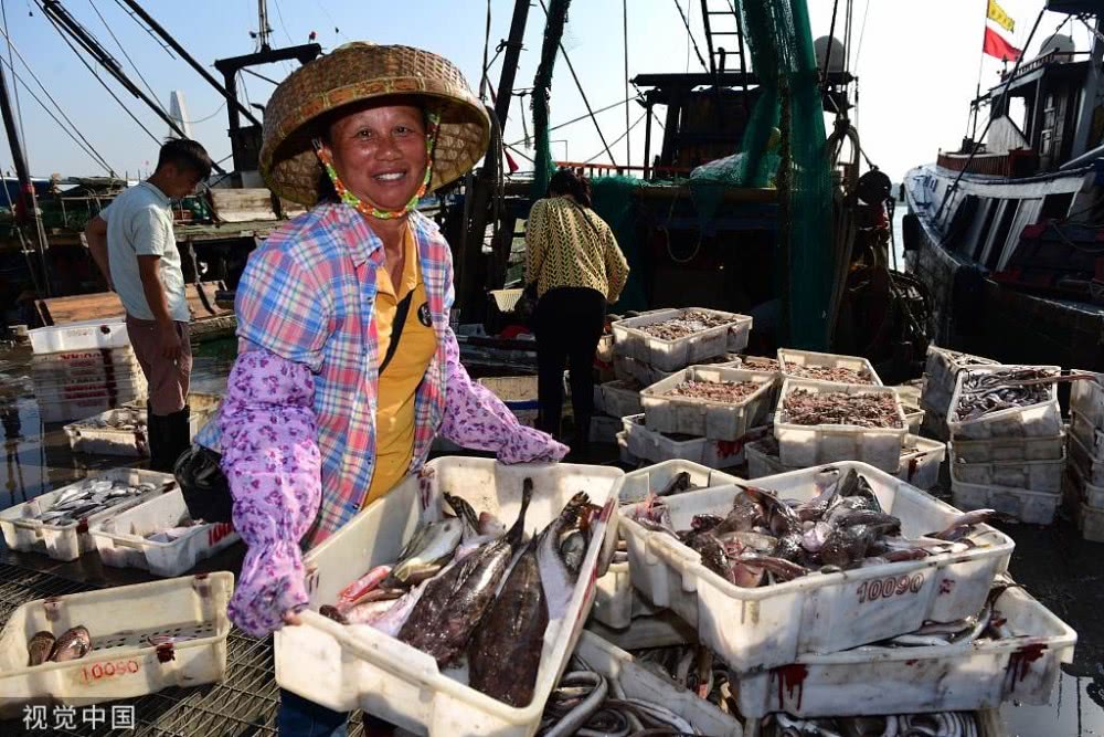 金秋時節(jié),漁民抓住南海風和日麗秋高氣爽的好天氣加緊進行海洋捕撈。