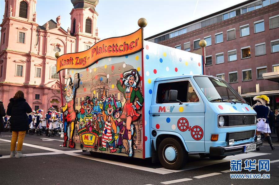 這是1月1日在德國美因茨新年游行活動(dòng)中拍攝的一輛彩車。新華社記者逯陽攝