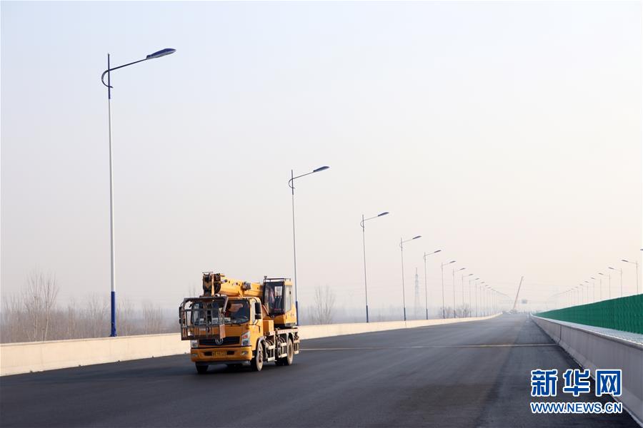 1月3日,施工車輛在北京大興國際機場北線高速公路廊坊段行駛。新華社記者牟宇攝