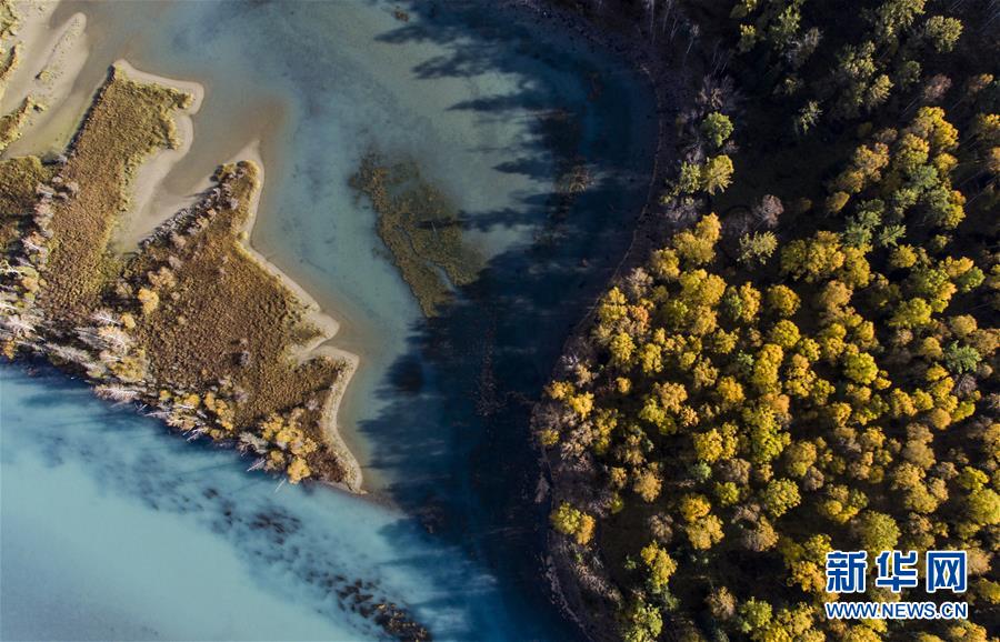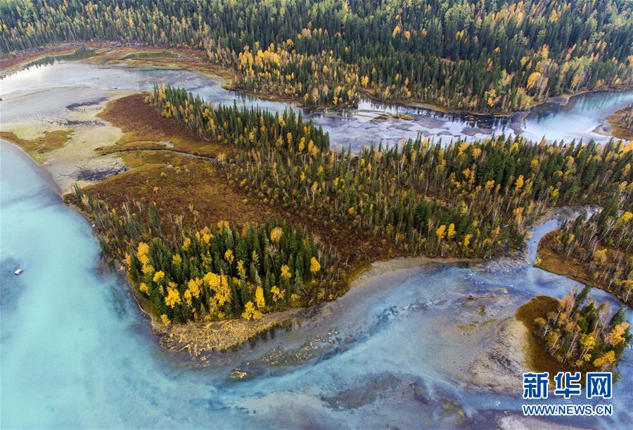 9月25日無(wú)人機(jī)拍攝的喀納斯景區(qū)風(fēng)光。新華社記者王菲攝