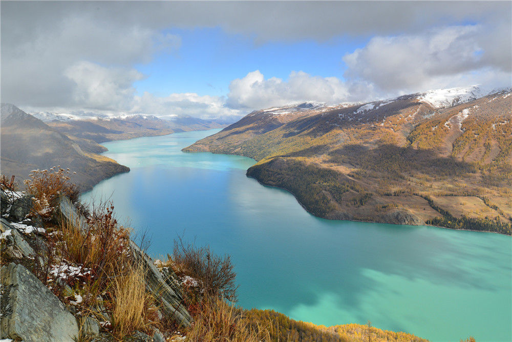新疆維吾爾自治區(qū)阿勒泰地區(qū)??{斯湖,面積45.75平方公里,平均水深120米,最深處達(dá)到188.5米,蓄水量達(dá)53.8億立方米。外形呈月牙,被推測(cè)為古冰川強(qiáng)烈運(yùn)動(dòng)阻塞山谷積水而成。李二慶/視覺(jué)中國(guó)