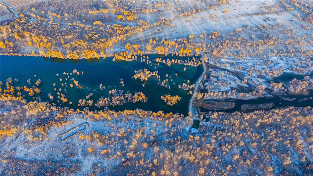 2016年11月2日,航拍的新疆塔里木河尉犁縣段胡楊林。胡熱/視覺(jué)中國(guó)