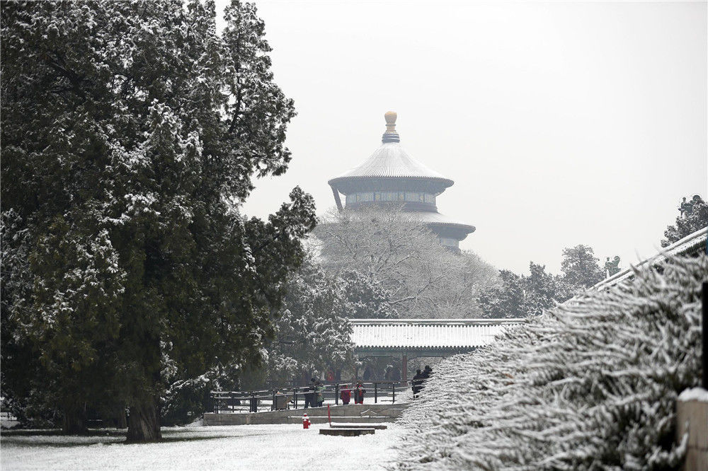 2019年11月30日,民眾在北京天壇公園內(nèi)賞雪。29日,北京迎來2019年冬季初雪。富田(攝影部)/中新社/視覺中國(guó)