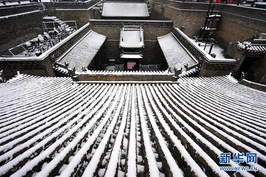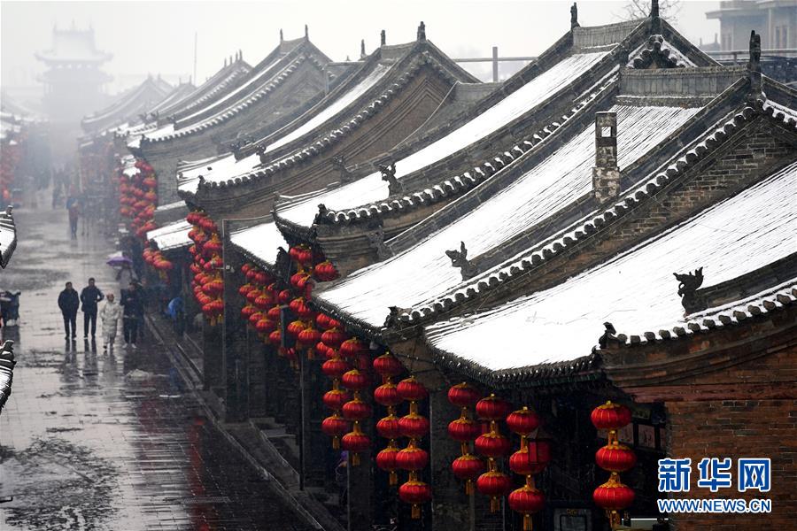 當(dāng)日,山西省平遙縣迎來降雪,雪中的平遙古城銀裝素裹,美景如畫。平遙古城是目前中國保存最完整的古代縣級城池之一,1997年被列入世界文化遺產(chǎn)名錄。