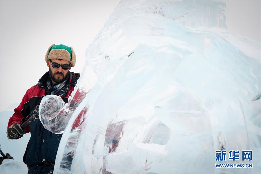 1月6日,參賽者在創(chuàng)作冰雕。新華社記者王松攝