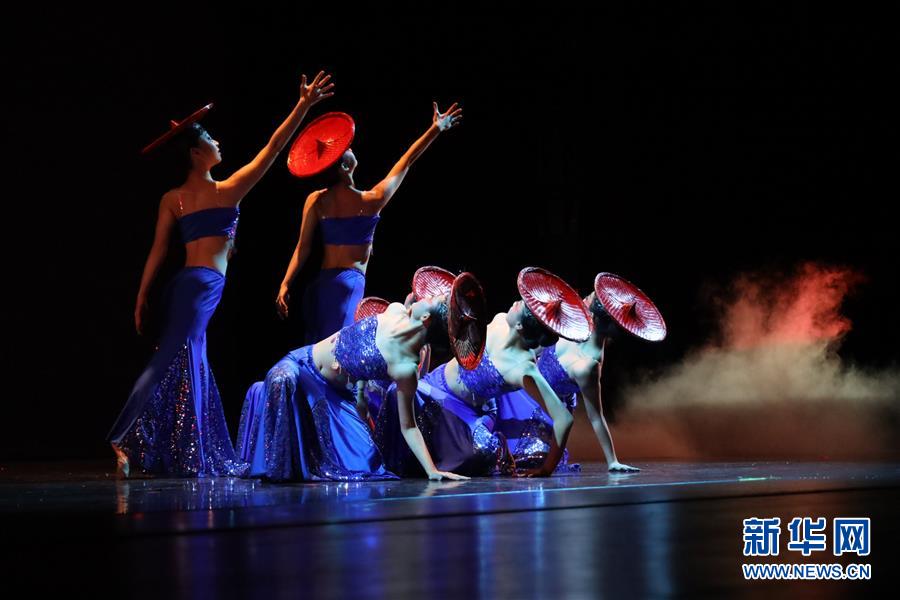 1月11日,在美國休斯敦舉辦的“擁抱春天”晚會(huì)上,演員表演傣族舞《山靈》。