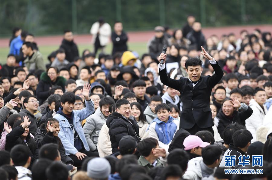 1月15日,中央歌劇院男中音歌唱家王藝清在慰問演出中與觀眾互動。 當(dāng)日,“我們的中國夢”——文化進(jìn)萬家中央歌劇院文藝小分隊(duì)來到重慶市石柱土家族自治縣第一職業(yè)學(xué)校進(jìn)行慰問演出,為學(xué)校的三千多名師生帶來了一場精彩的音樂大餐。 新華社記者 王全超 攝