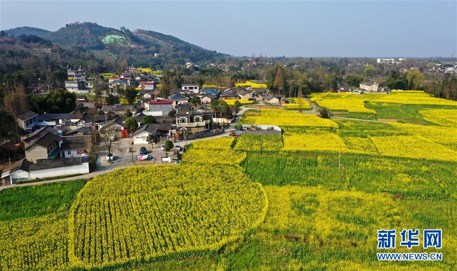 2月25日在四川省崇州市拍攝的油菜花田(無人機照片)。 新華社記者 王曦 攝