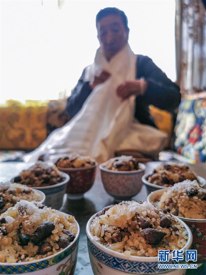 擺放在西藏群眾家中的新年供品(2月24日攝)。新華社記者普布扎西攝