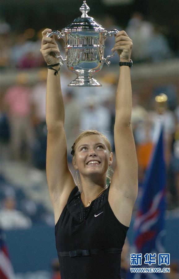 圖為2006年9月9日,莎拉波娃在美國(guó)網(wǎng)球公開(kāi)賽女單決賽中戰(zhàn)勝比利時(shí)選手海寧,奪得冠軍。 新華社記者趙鵬攝