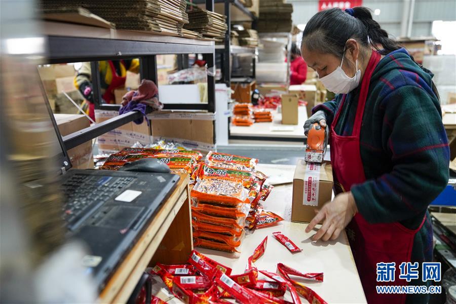 2月27日,在秀山(武陵)現(xiàn)代物流園區(qū)的電商云倉內,工人在打包包裹。地處重慶市秀山縣的秀山(武陵)現(xiàn)代物流園區(qū),是渝湘黔三省市交界地區(qū)的區(qū)域性物流中心。重慶市秀山縣在做好新冠肺炎疫情防控工作前提下,當?shù)卣e極幫助電商、物流企業(yè)解決招工、運輸、銷售等方面的實際問題,推動秀山(武陵)現(xiàn)代物流園區(qū)快速進入全面復工復產階段。據(jù)介紹,隨著物流園區(qū)的電商和物流企業(yè)全面復工復產,既滿足當?shù)厝罕姷奈镔Y供應,又幫助當?shù)剞r產品通過電商平臺實現(xiàn)快速銷售。新華社記者劉潺攝