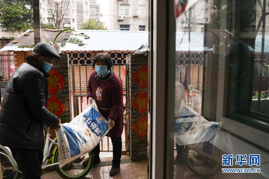 2月29日,張?zhí)m英(右)和老伴徐金保買(mǎi)來(lái)做包子所需的面粉。新華社記者張端攝