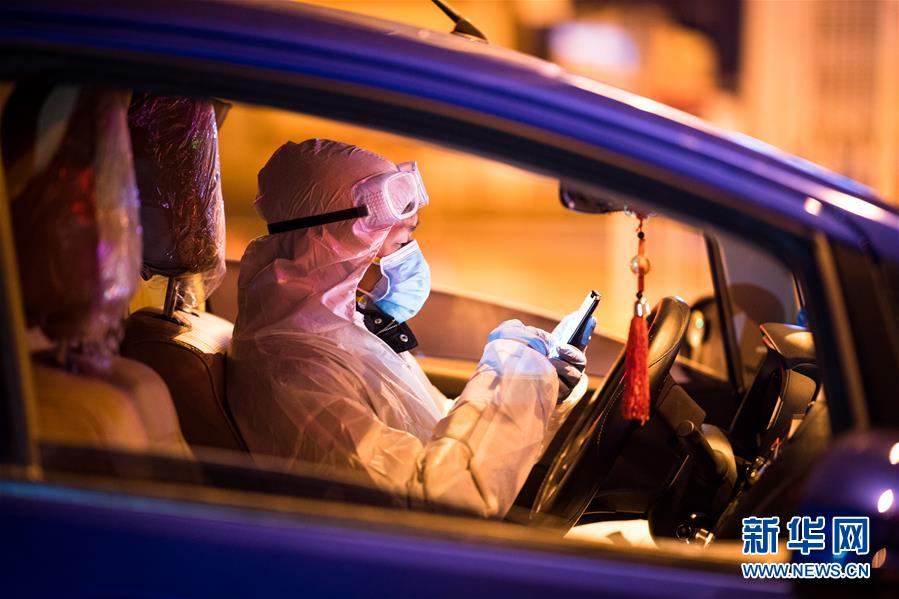 2月29日凌晨,王震接上產(chǎn)婦劉婷后駕車(chē)前往武漢市婦幼保健院。新華社記者 肖藝九 攝