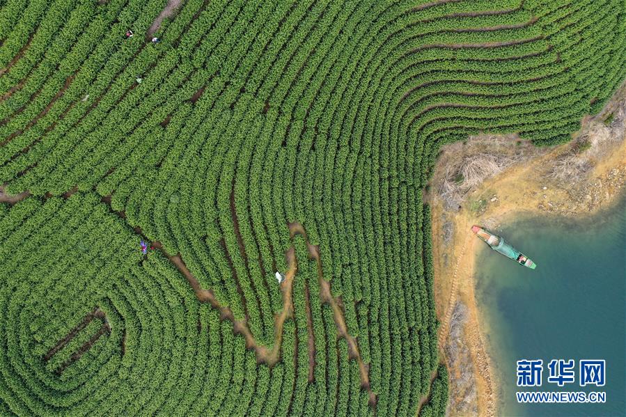 這是淳安縣里商鄉(xiāng)村坑村一片茶園(3月2日攝,無(wú)人機(jī)照片)。當(dāng)日,浙江省淳安縣春茶全面開(kāi)采,千島湖上星星點(diǎn)點(diǎn)的“島嶼茶園”浮在碧波之上,如夢(mèng)似幻。新華社記者翁忻旸攝