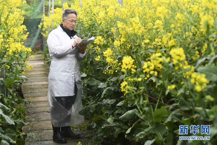 3月5日,重慶市油菜工程技術研究中心負責人李加納教授在觀察記錄油菜生長情況。時下正值油菜花期,重慶市油菜工程技術研究中心的農(nóng)學專家?guī)ьI學生和技術工人搶抓農(nóng)時,推進油菜科研和育種工作。新華社記者 王全超 攝