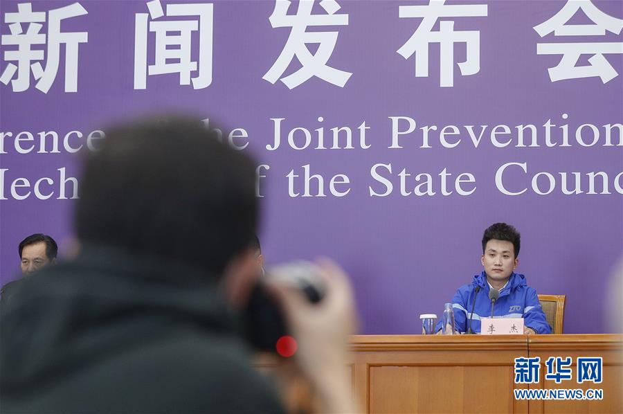 3月9日,中通快遞北京廠洼路網(wǎng)點(diǎn)快遞員李杰在北京出席國務(wù)院聯(lián)防聯(lián)控機(jī)制新聞發(fā)布會。新華社記者張玉薇攝
