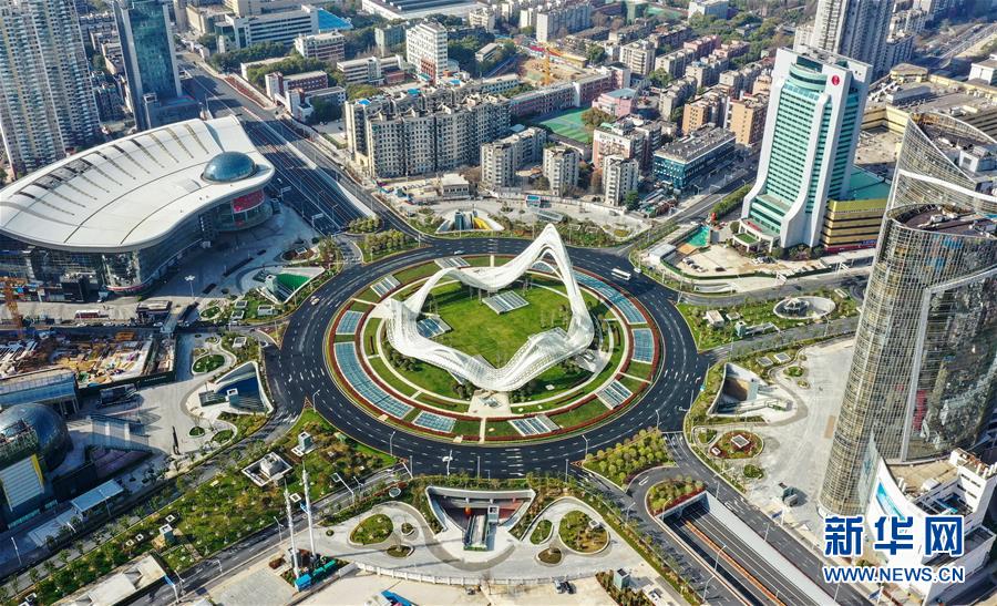 這是3月15日拍攝的武漢光谷廣場(chǎng)(無人機(jī)照片)。 3月15日,江城武漢天氣晴好,整個(gè)城市沐浴在和煦的春光中。 新華社記者 李賀 攝