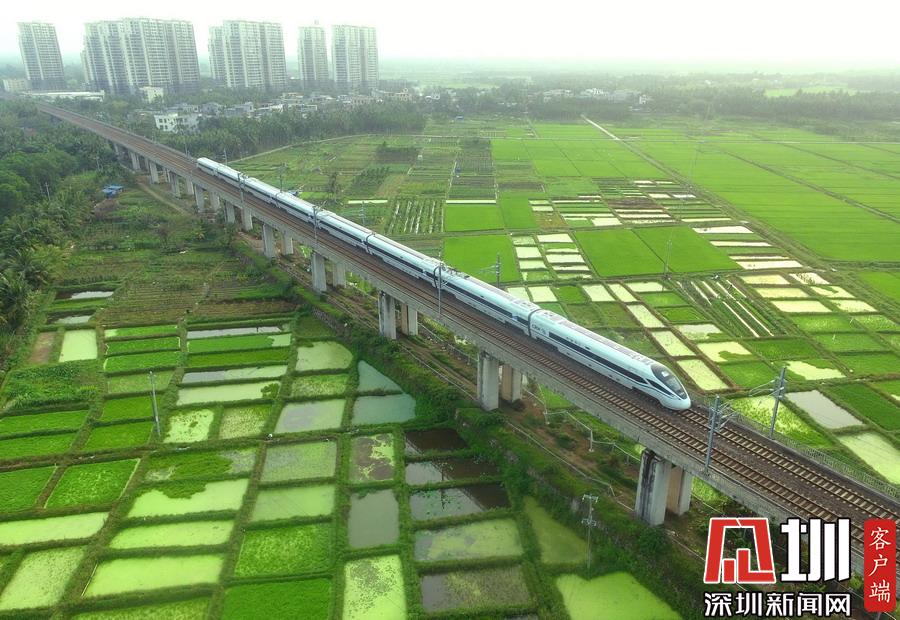 2020年3月17日,海南環(huán)島鐵路一列動(dòng)車從春光明媚的瓊海城區(qū)經(jīng)過。