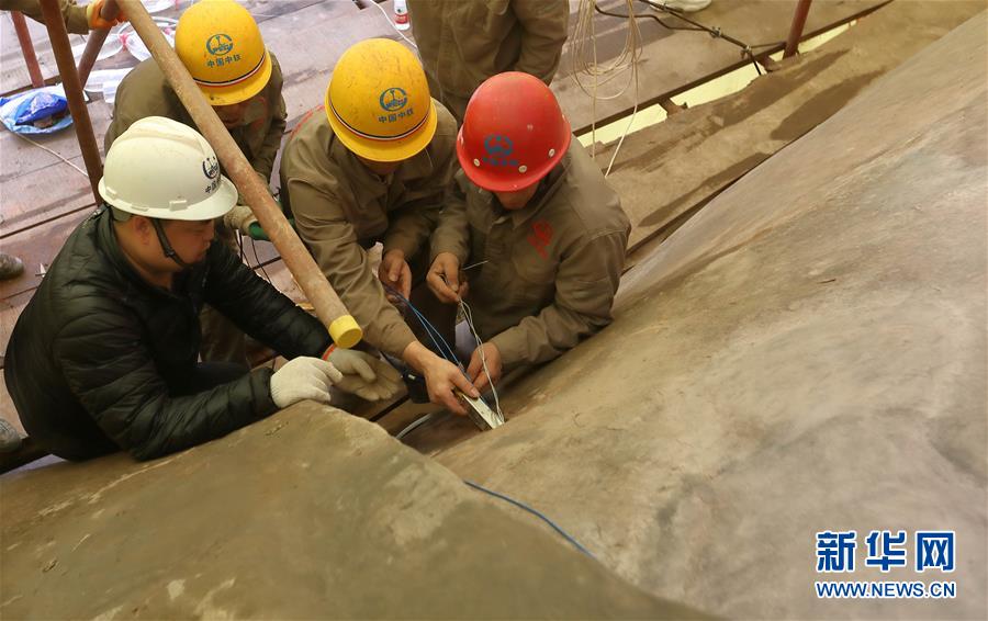 中鐵西北科學(xué)研究院有限公司文保中心的工作人員將勘測(cè)探頭放入大佛巖體內(nèi)(3月17日攝)。
