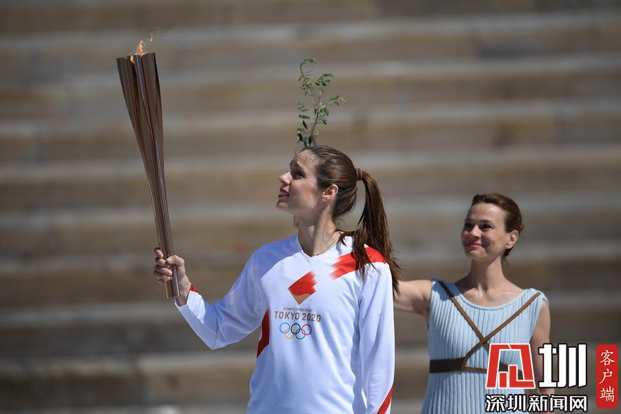 2020年3月18日,2020年?yáng)|京奧運(yùn)會(huì)火炬交接儀式在希臘雅典帕納辛奈科體育場(chǎng)舉行。