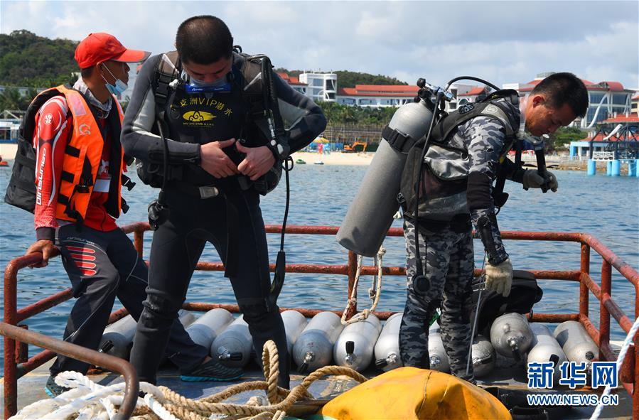在位于海南三亞蜈支洲島旅游區(qū)的海洋牧場(chǎng),工作人員在船上穿戴裝備,準(zhǔn)備下海作業(yè)(3月27日攝)。近日,位于海南三亞蜈支洲島旅游區(qū)的海洋牧場(chǎng)復(fù)工,海底作業(yè)逐漸恢復(fù)正常,開(kāi)始進(jìn)行人工魚(yú)礁吊裝擺位、水下監(jiān)控清理以及日常巡護(hù)等工作。據(jù)介紹,人工魚(yú)礁有利于魚(yú)類(lèi)種類(lèi)增加和數(shù)量提高,蜈支洲島海域海洋牧場(chǎng)人工魚(yú)礁表面附著珊瑚、貝類(lèi)、藻類(lèi)等生物種類(lèi)達(dá)120余種。新華社記者楊冠宇攝