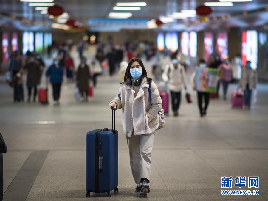 3月28日,在漢口火車站,一名小朋友幫家長提行李出站。當日零時起,武漢市恢復辦理鐵路客站到達業(yè)務。為做好抵漢旅客組織工作,武漢三大火車站安排專人提前與列車對接,核對下車人數,并組織工作人員和鐵路志愿者提前在站臺等候接車,做好組織引導。列車到達后,車站配合防疫部門做好旅客出站測溫、登記信息等工作,并和公交集團、地鐵公司聯動,引導旅客按照去向有序換乘。新華社記者肖藝九攝