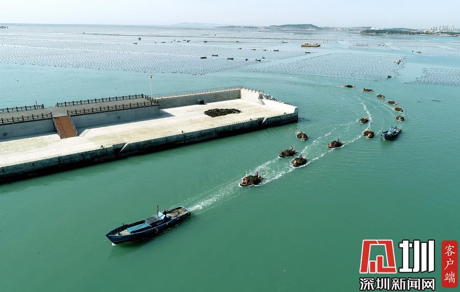 目前正是遼寧省大連市長海縣扇貝和魚類收獲的季節(jié),長海縣小長山島海域經(jīng)典國家級海洋牧場呈現(xiàn)出一片繁忙的豐收景象。