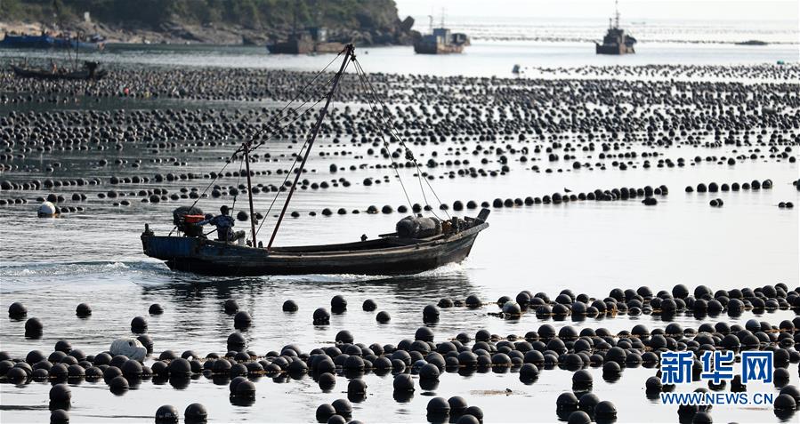 目前正是遼寧省大連市長??h扇貝和魚類收獲的季節(jié),長??h小長山島海域經(jīng)典國家級海洋牧場呈現(xiàn)出一片繁忙的豐收景象。