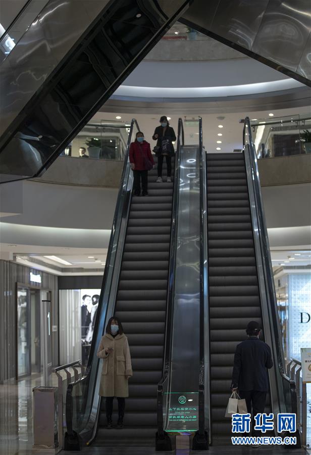 3月30日,在武商國際廣場,顧客乘坐滾梯。當日,武漢市多家商場開門迎客。新華社記者費茂華攝