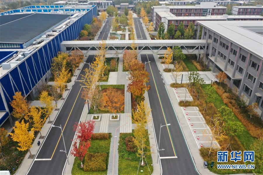 11月6日拍攝的雄安新區(qū)市民服務(wù)中心(無(wú)人機(jī)拍攝)。深秋時(shí)節(jié)的雄安新區(qū)色彩斑斕,景色宜人。新華社記者邢廣利攝