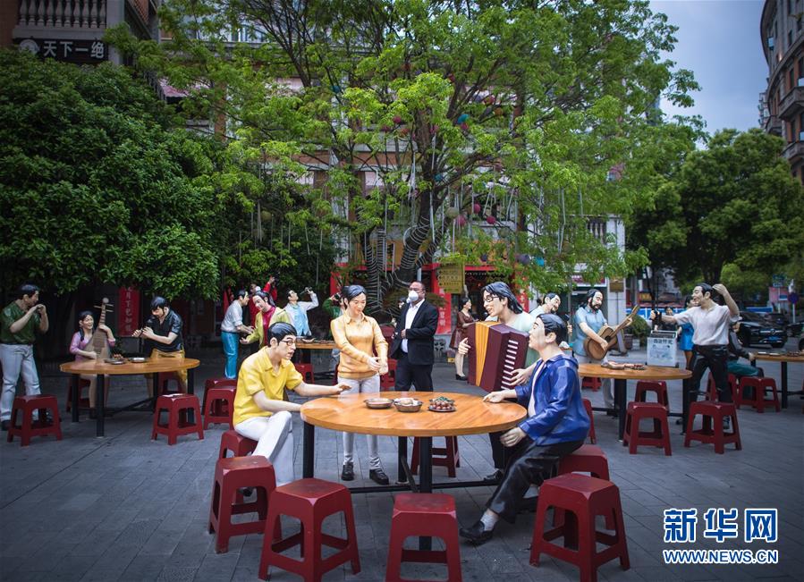 4月1日,在武漢天地廣場,人們?cè)谙硎艽汗?。新華社記者費(fèi)茂華攝