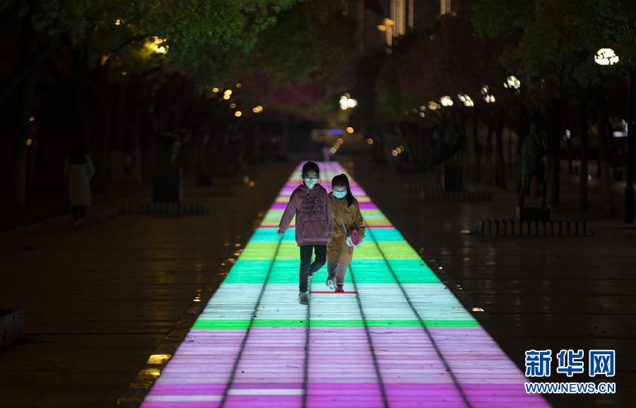 4月1日晚,兩位小朋友在江灘公園玩耍。新華社記者費(fèi)茂華攝