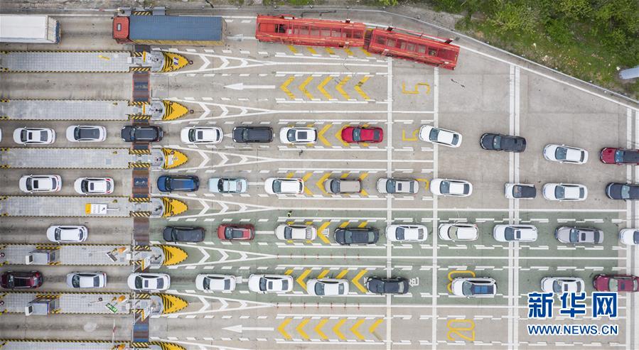 3月24日,在武漢西高速收費(fèi)站交通卡點(diǎn),返漢車輛排隊(duì)等候入城(無(wú)人機(jī)照片)。新華社記者才揚(yáng)攝