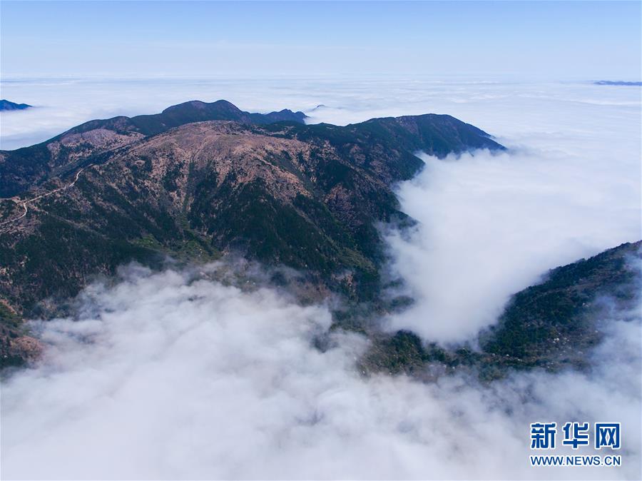 武夷山國(guó)家公園最高峰黃崗山云霧繚繞(4月1日攝,無人機(jī)照片)。 新華社記者 姜克紅 攝