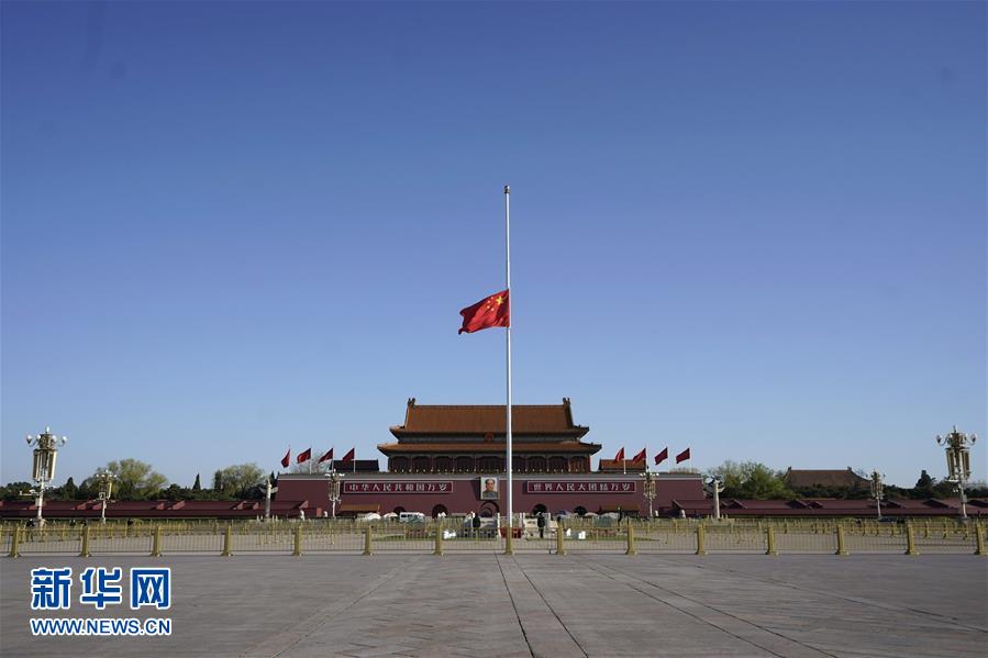 4月4日,北京天安門廣場(chǎng)降下半旗,表達(dá)對(duì)抗擊新冠肺炎疫情斗爭(zhēng)犧牲烈士和逝世同胞的深切哀悼。新華社記者 鞠煥宗 攝