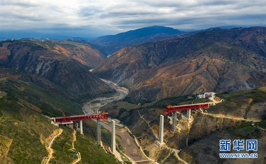 3月5日,空中俯瞰建設(shè)中的中老鐵路元江特大橋(無人機(jī)照片)。近期,中老鐵路玉溪至磨憨段有序復(fù)工復(fù)產(chǎn),由中鐵四局承建的中老鐵路全線重點(diǎn)控制性工程——元江特大橋、南溪河特大橋正在加緊施工建設(shè)。新華社記者江文耀攝