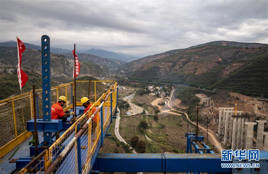 中老鐵路元江特大橋“邁”過第一高墩